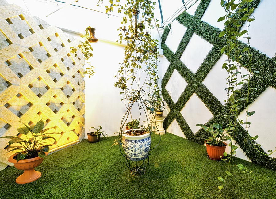 Entre sus amenidades destacan: una recámara principal con vestidor y baño con tina de hidromasaje, baño de visitas completo y con sauna, un invernadero interior, cuarto de tv con pantalla plana y con clóset, sala con sillones tipo “reposet” con controles táctiles, cocina, comedor para seis personas, aire acondicionado y por supuesto una increíble vista al jardín central.